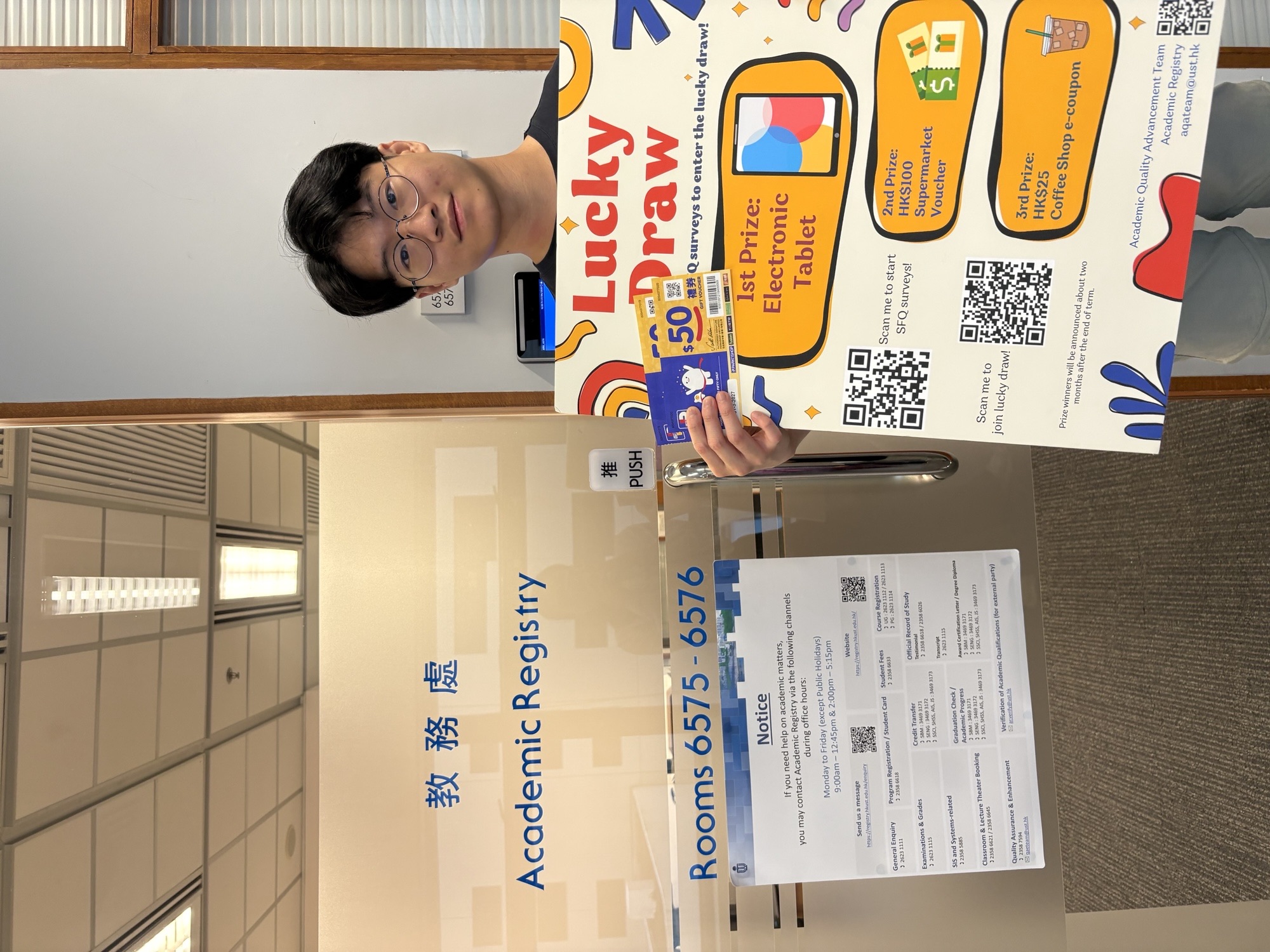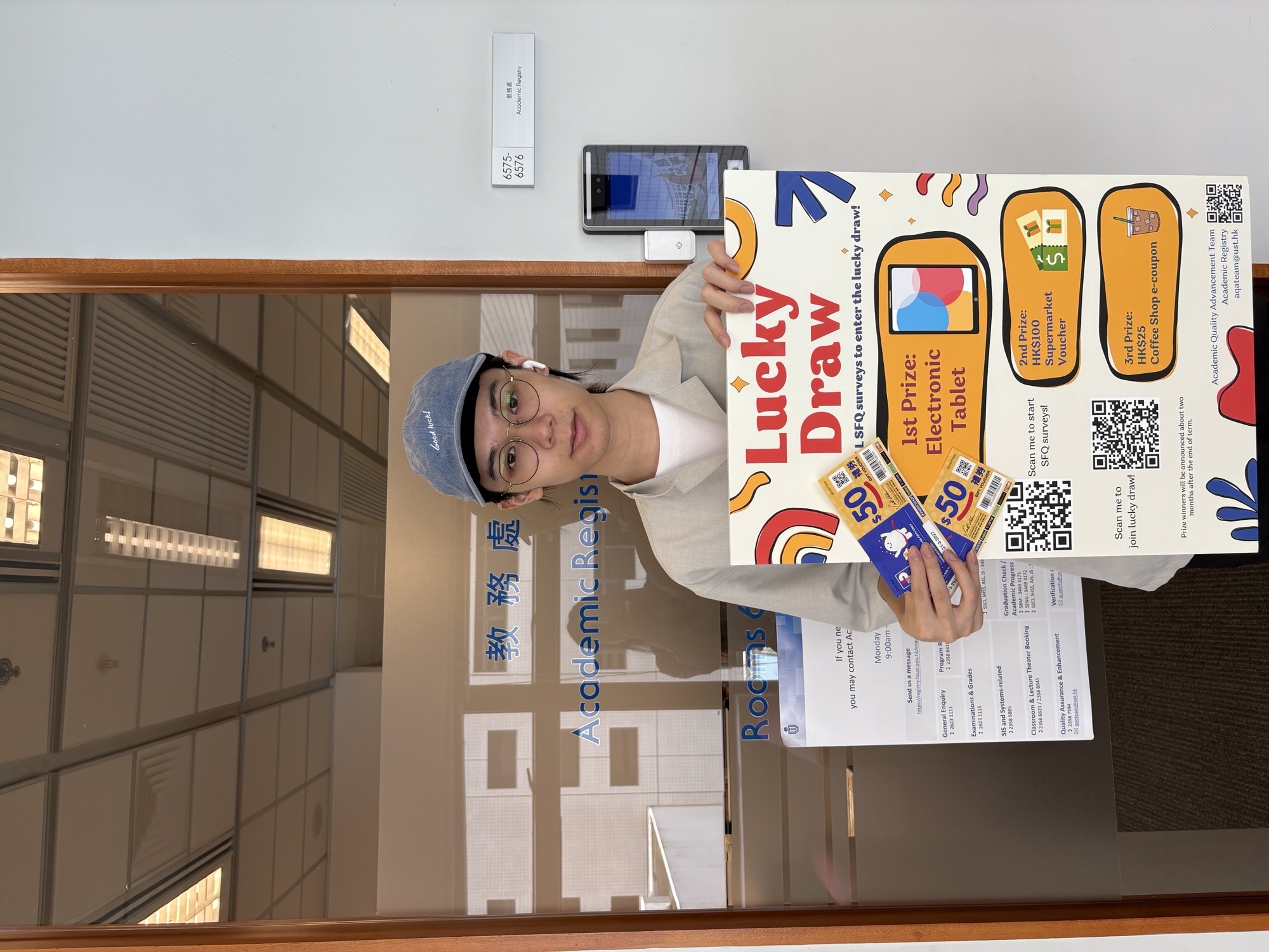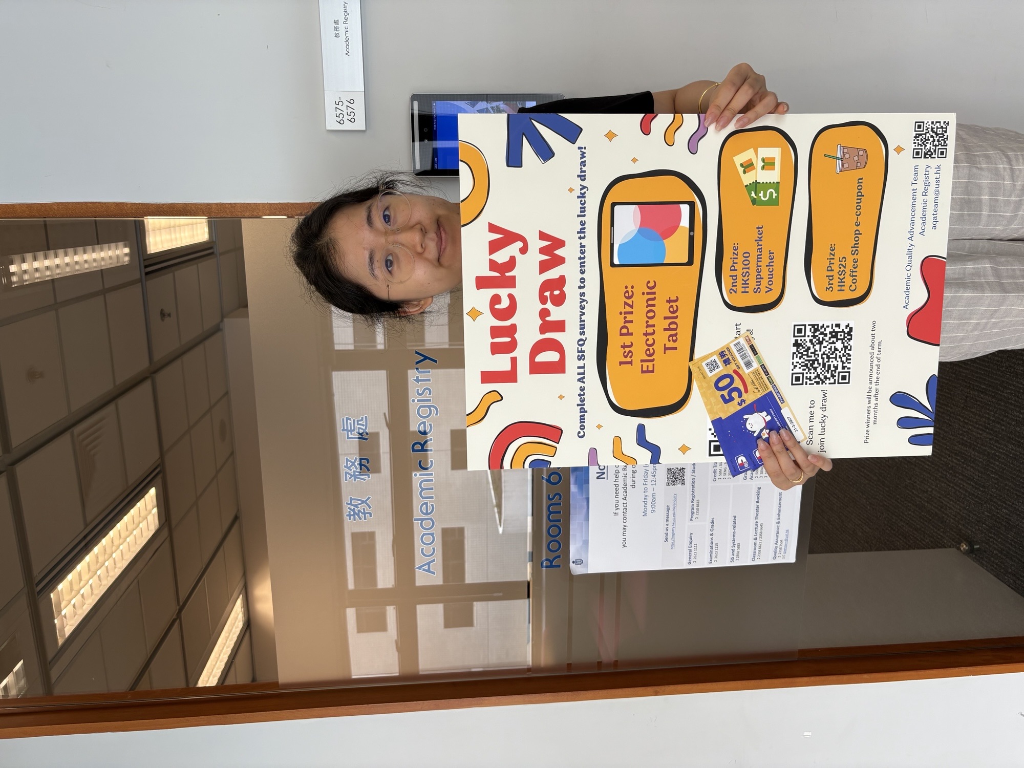 HKUST Students who have completed all the required SFQs for the AY2024/25 Spring term and shared the best teaching and learning practice they experienced are eligible to participate in the lucky draw campaign.