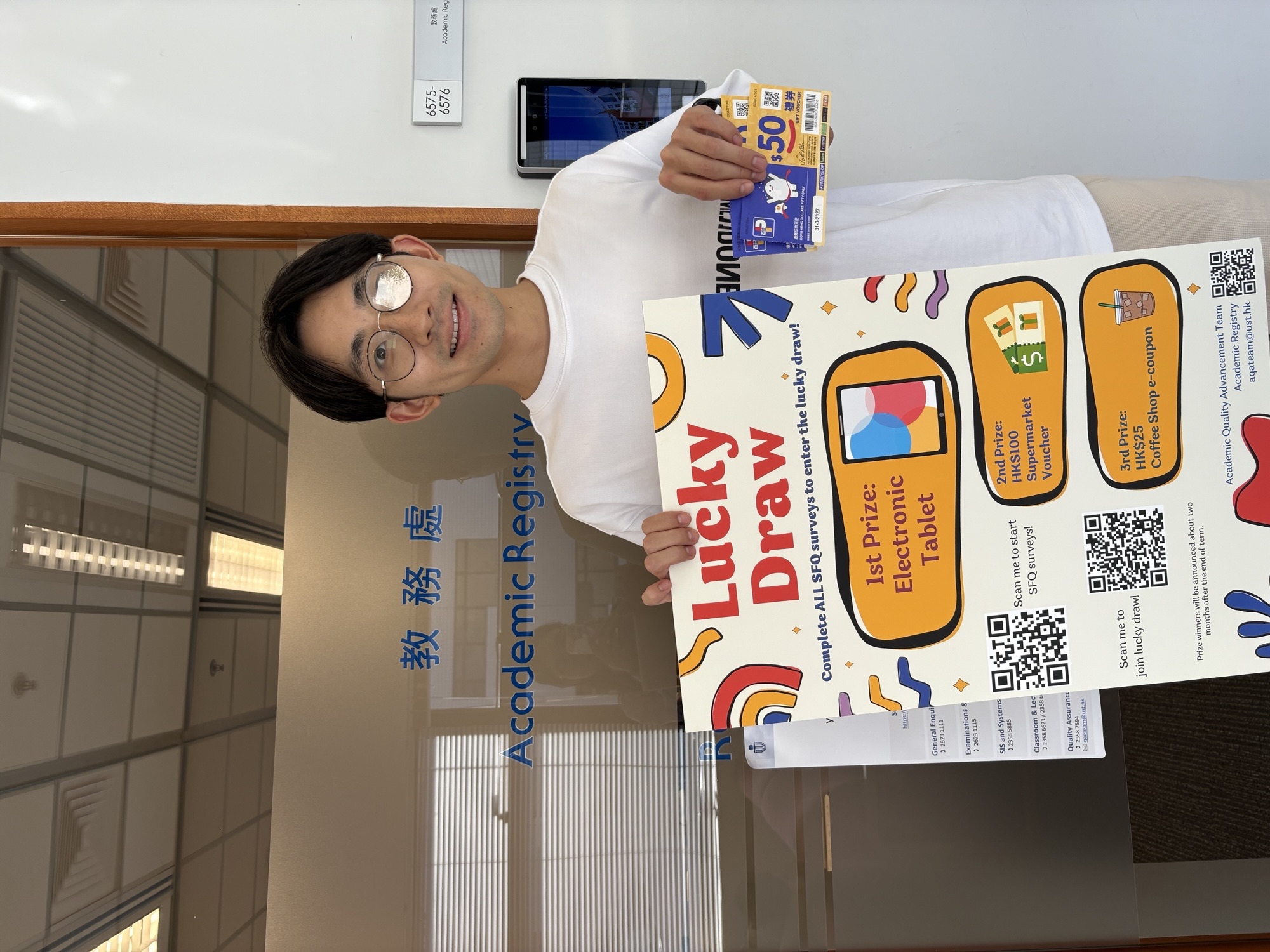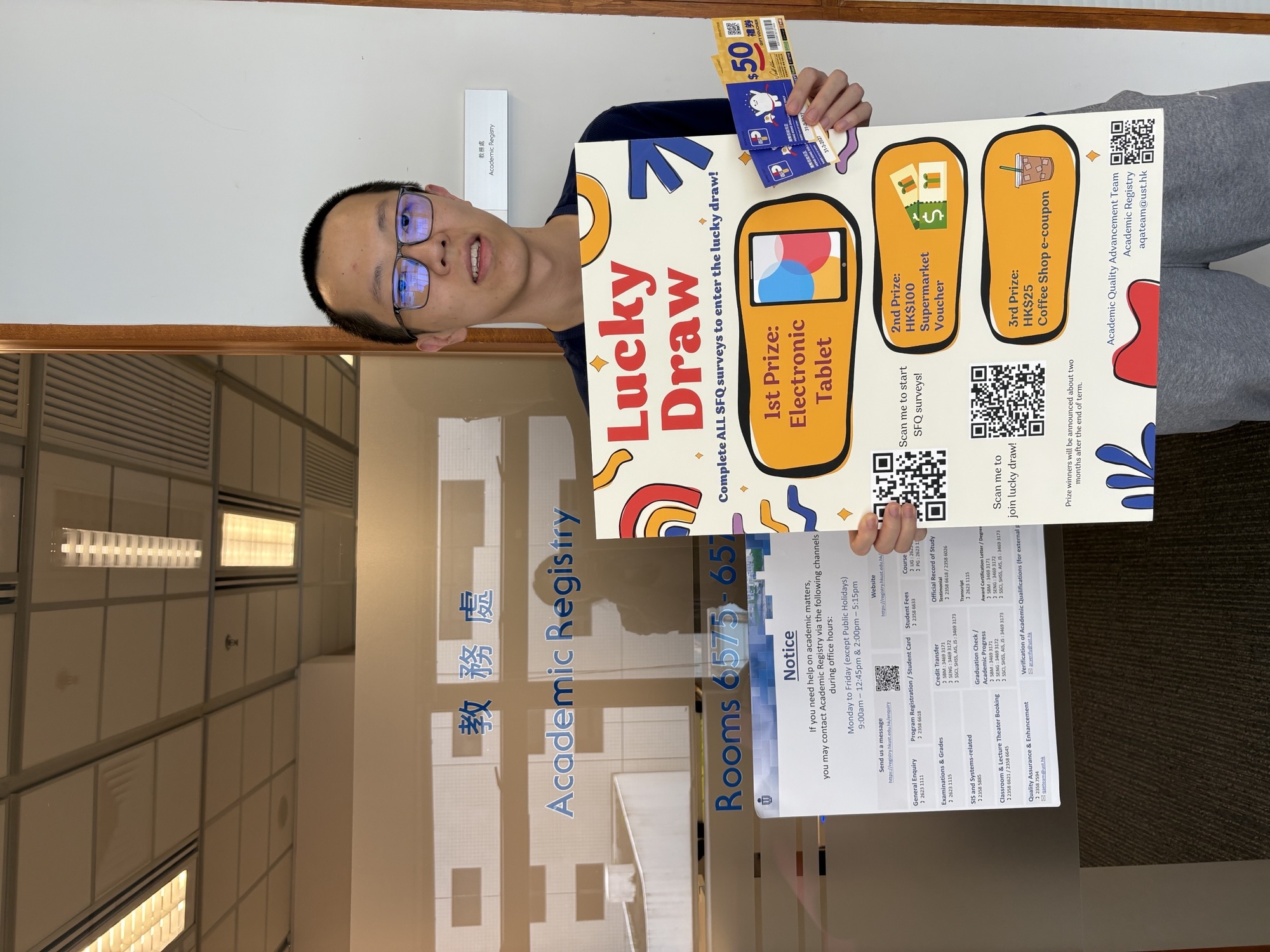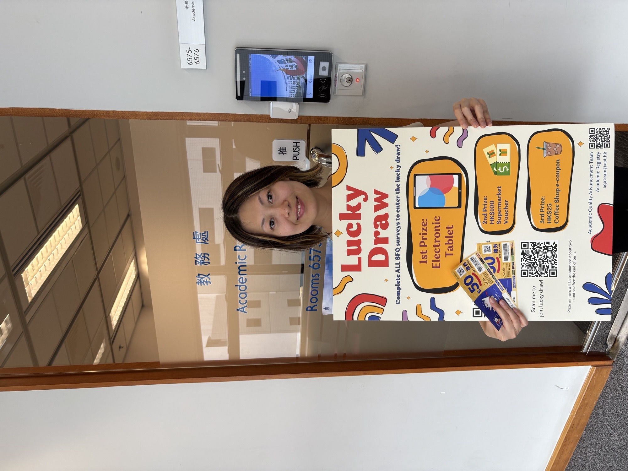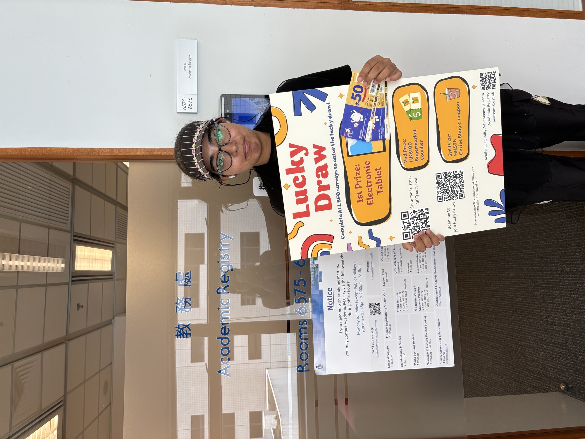 HKUST Students who have completed all the required SFQs for the AY2024/25 Spring term and shared the best teaching and learning practice they experienced are eligible to participate in the lucky draw campaign.